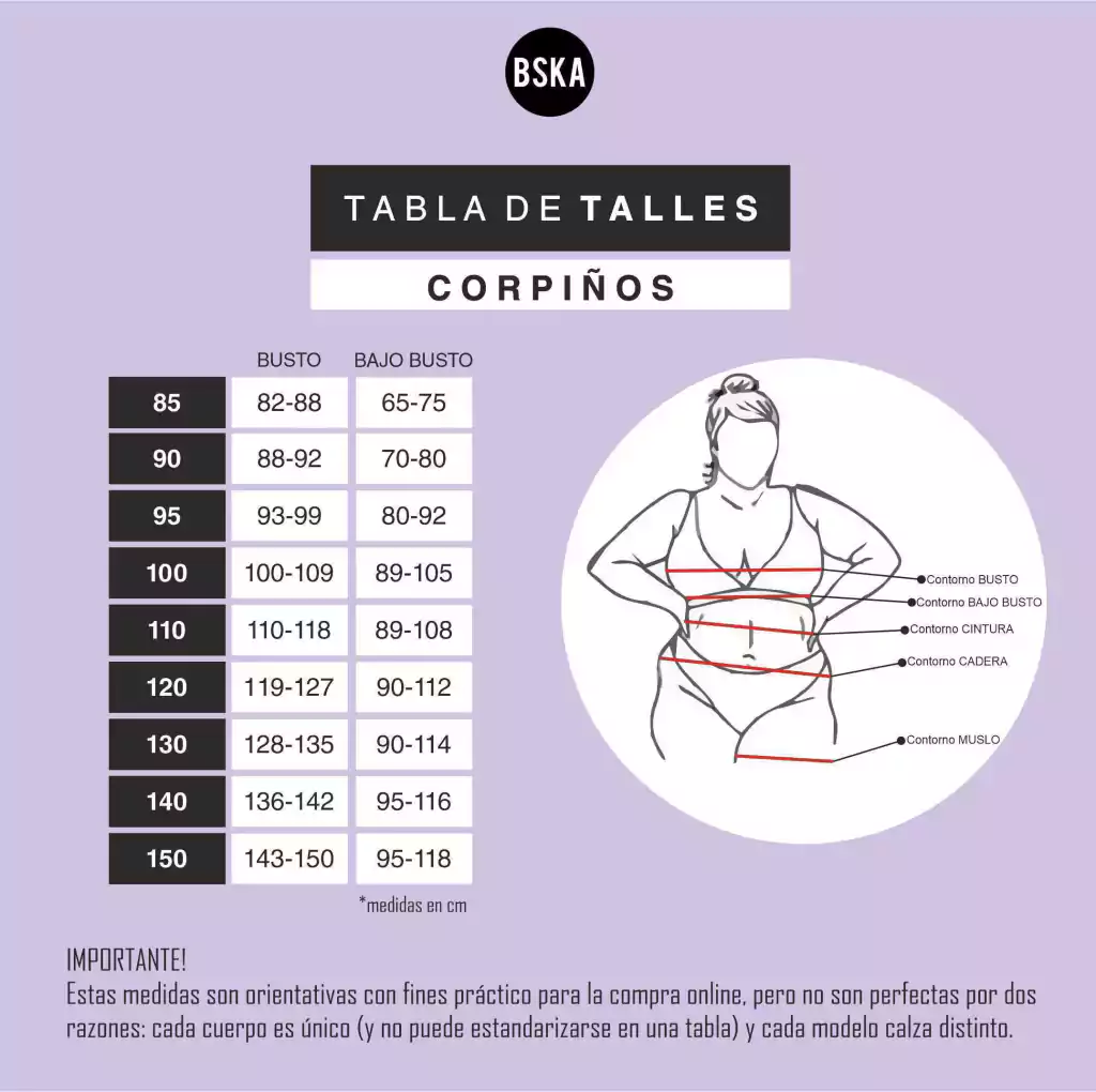 Cada modelo y tela se adapta diferente al cuerpo, por lo que el talle de un modelo a otro puede variar. (Existen telas con mayor estiramiento como el microtul y la lycra; y otras con menor como el algodón o jersey).